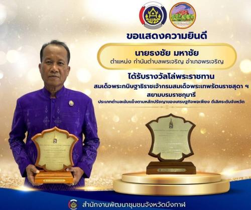 (1) นายธงชัย มหาชัย ตำแหน่ง กำนันตำบลพรเจริญ อำเภอพรเจริญ รางวัลโล่พระราชทานฯ ประเภทตำบลเข้มแข็งตามหลักปรัชญาของเศรษฐกิจพอเพียง ดีเลิศระดับจังหวัด