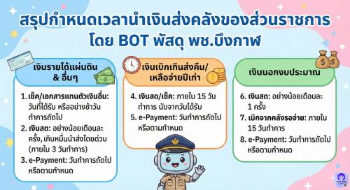 3) การนำเงินส่งคลังตามระยะเวลาที่กำหนดและหลักฐานการนำส่ง