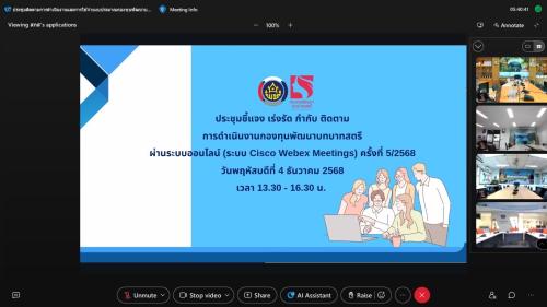 พช.บึงกาฬ : เข้าร่วมการประชุมชี้แจง เร่งรัด กำกับ ติดตามการดำเนินงานและการใช้จ่ายงบประมาณกองทุนพัฒนาบทบาทสตรี ประจำปีงบประมาณ พ.ศ. 2569 ผ่านระบบออนไลน์ (ระบบ Cisco Webex Meetings) ครั้งที่ 5/2568