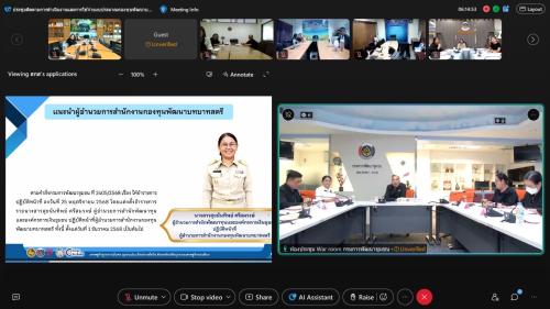 นายสยาม ศิริมงคล อธิบดีกรมการพัฒนาชุมชน มอบหมายให้ นายวรงค์ แสงเมือง รองอธิบดีกรมการพัฒนาชุมชน เป็นประธานในการประชุมติดตามการดำเนินงานและการใช้จ่ายงบประมาณกองทุนพัฒนาบทบาทสตรี ประจำปีงบประมาณ พ.ศ. 2569 ผ่านระบบออนไลน์ (ระบบ Cisco Webex Meetings) ครั้งที่ 5/2568 เพื่อติดตามและสนับสนุนการขับเคลื่อนการดำเนินงานของกองทุนพัฒนาบทบาทสตรี ซึ่งมีประเด็น ดังนี้