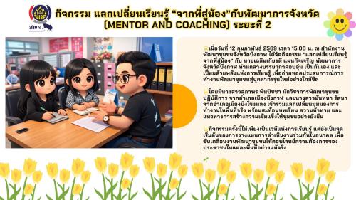🌟เมื่อวันที่ 12 กุมภาพันธ์ 2569 เวลา 15.00 น. ณ สำนักงานพัฒนาชุมชนจังหวัดบึงกาฬ ได้จัดกิจกรรม “แลกเปลี่ยนเรียนรู้จากพี่สู่น้อง” กับ นายเฉลิมเกียรติ แผนกิจเจริญ พัฒนาการจังหวัดบึงกาฬ ท่ามกลางบรรยากาศอบอุ่น เป็นกันเอง และเปี่ยมด้วยพลังแห่งการเรียนรู้ เพื่อถ่ายทอดประสบการณ์การทำงานพัฒนาชุมชนสู่บุคลากรรุ่นใหม่อย่างใกล้ชิด