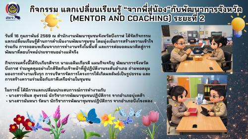 วันที่ 16 กุมภาพันธ์ 2569 ณ สำนักงานพัฒนาชุมชนจังหวัดบึงกาฬ ได้จัดกิจกรรมแลกเปลี่ยนเรียนรู้ด้านการดำเนินงานพัฒนาชุมชน โดยมุ่งเน้นการสร้างความเข้าใจร่วมกัน การถอดบทเรียนจากการทำงานจริงในพื้นที่ และการต่อยอดแนวคิดสู่การพัฒนาที่ตอบโจทย์ประชาชนอย่างแท้จริง
