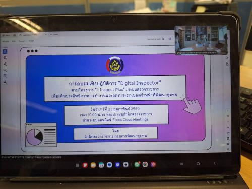 🤠 นายเฉลิมเกียรติ แผนกิจเจริญ พัฒนาการจังหวัดบึงกาฬ มอบหมายให้ นางสาวปัญชุกา จันทรา นักวิชาการพัฒนาชุมชนชำนาญการ เข้าร่วมการอบรมเชิงปฏิบัติการ "Digital Inspector" ภายใต้โครงการ "i-Inspect Plus" เพื่อขับเคลื่อนระบบตรวจราชการดิจิทัลมุ่งสู่การเป็นองค์กรอัจฉริยะ ผ่านระบบออนไลน์ Zoom Cloud Meetings