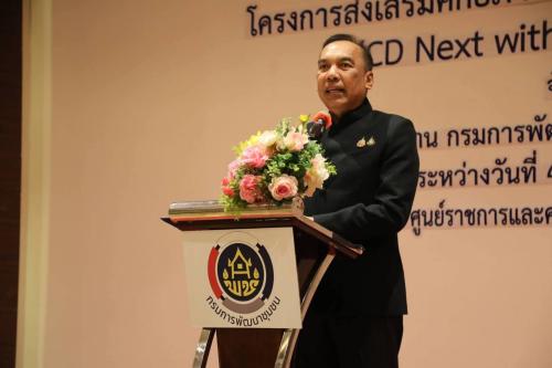 นายวรงค์ แสงเมือง รองอธิบดีกรมการพัฒนาชุมชน ให้เกียรติเป็นประธานเปิดโครงการ "ส่งเสริมศักยภาพนักพัฒนาชุมชนรุ่นใหม่สู่สากล (CD Next with Global Mindset)" โดยมีนายนพรัตน์ ธำรงทรัพย์ ผู้อำนวยการกองแผน กล่าวรายงานวัตถุประสงค์การจัดโครงการฯ พร้อมด้วยข้าราชการและเจ้าหน้าที่ผู้เข้ารับการอบรมจาก 76 จังหวัดทั่วประเทศเข้าร่วมกิจกรรม